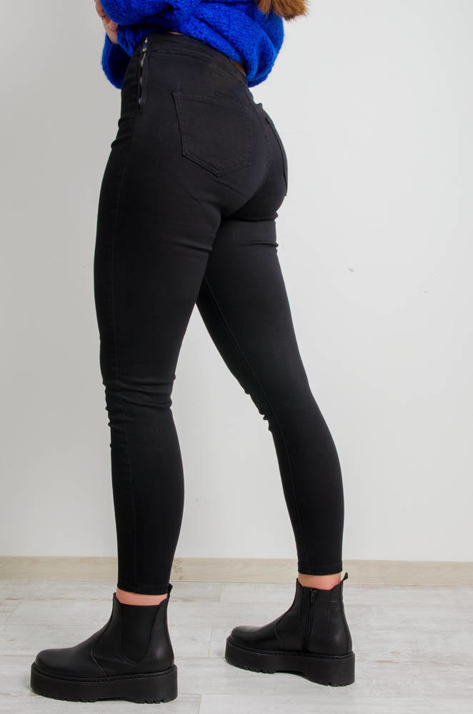 CZARNE SPODNIE Z ZAMKIEM Z BOKU- WYSOKI STAN