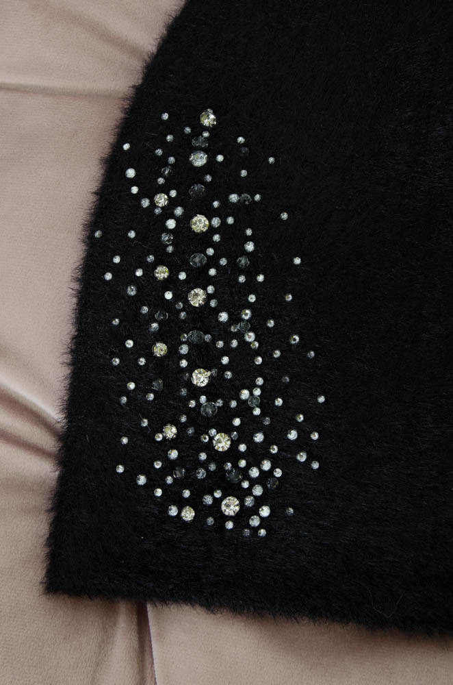 CZARNA FUTRZANA CZAPKA Z OZDOBNYMI KRYSZTAŁKAMI