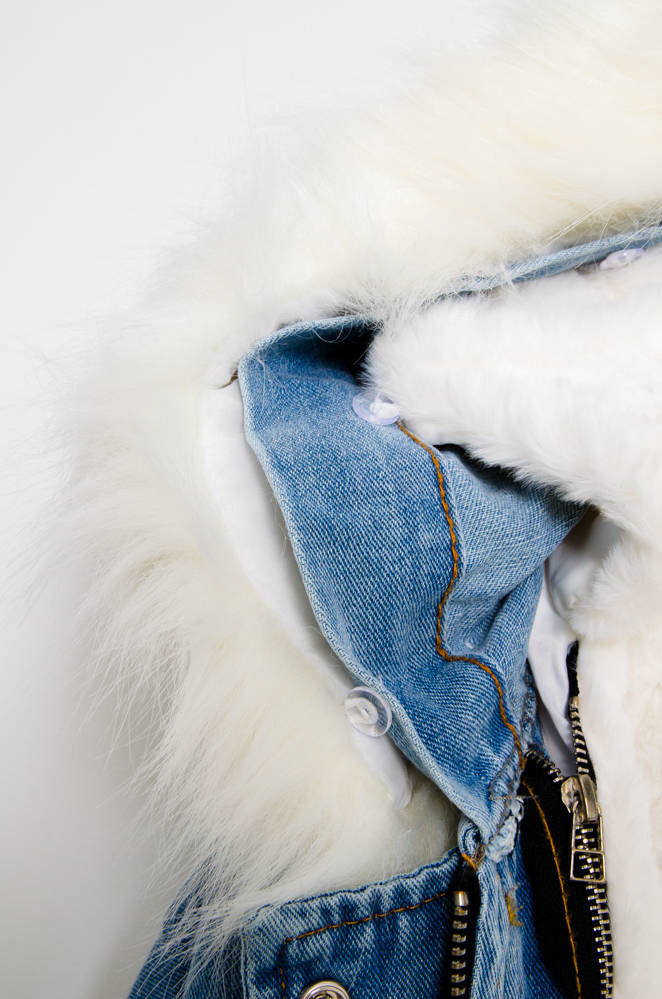 JEANSOWA KURTKA OVERSIZE Z BIAŁYM FUTERKIEM.