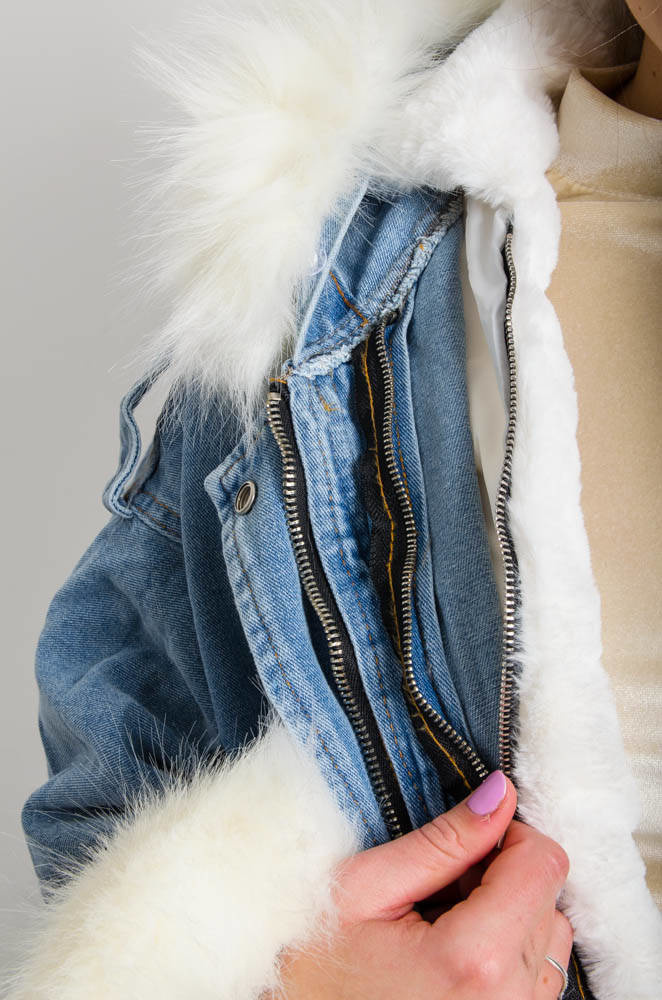 JEANSOWA KURTKA OVERSIZE Z BIAŁYM FUTERKIEM