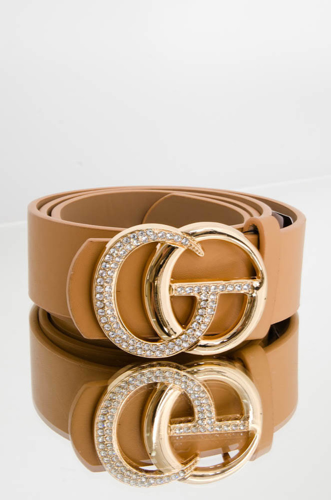 BRĄZOWY PASEK CG- ZŁOTE ZAPIĘCIE Z CYRKONIAMI