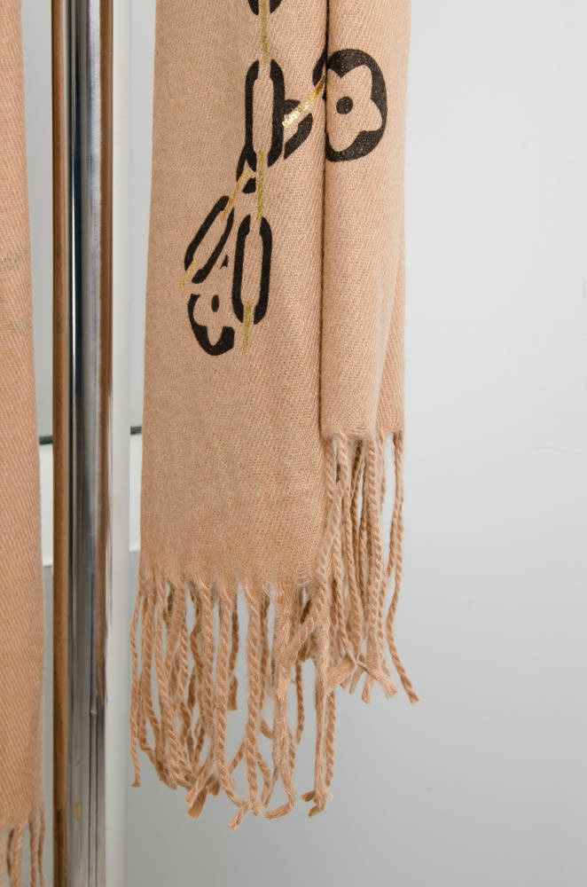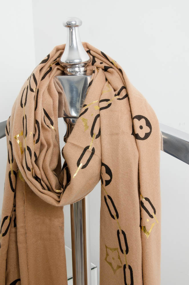 BEŻOWY SZAL ZE ZŁOTYM ZDOBIENIEM