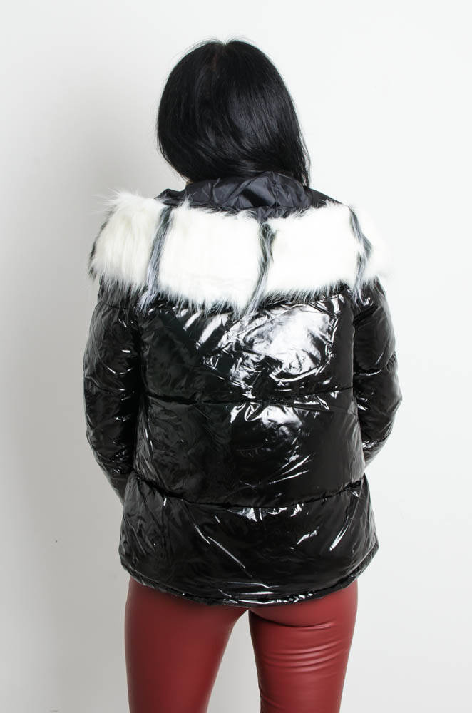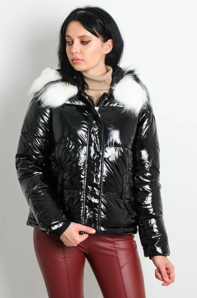 CZARNA KURTKA LAKIEROWANA Z FUTERKIEM