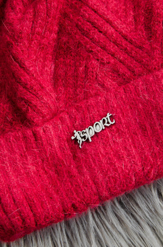 RÓŻOWA ZIMOWA CZAPKA PLECIONA Z POMPONEM