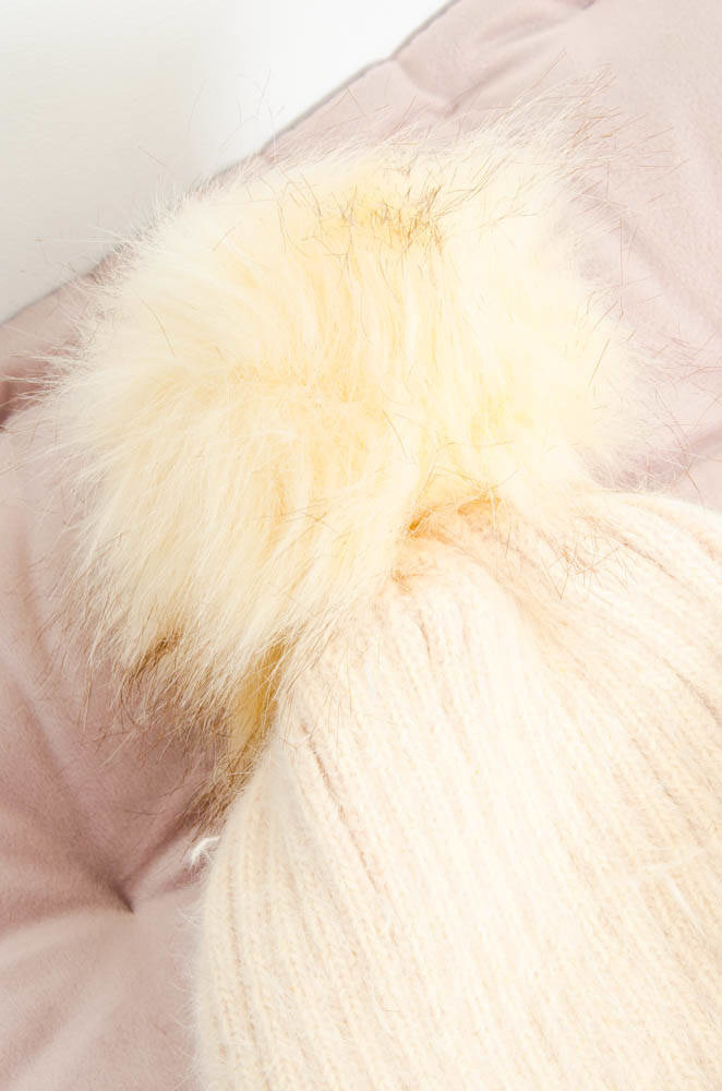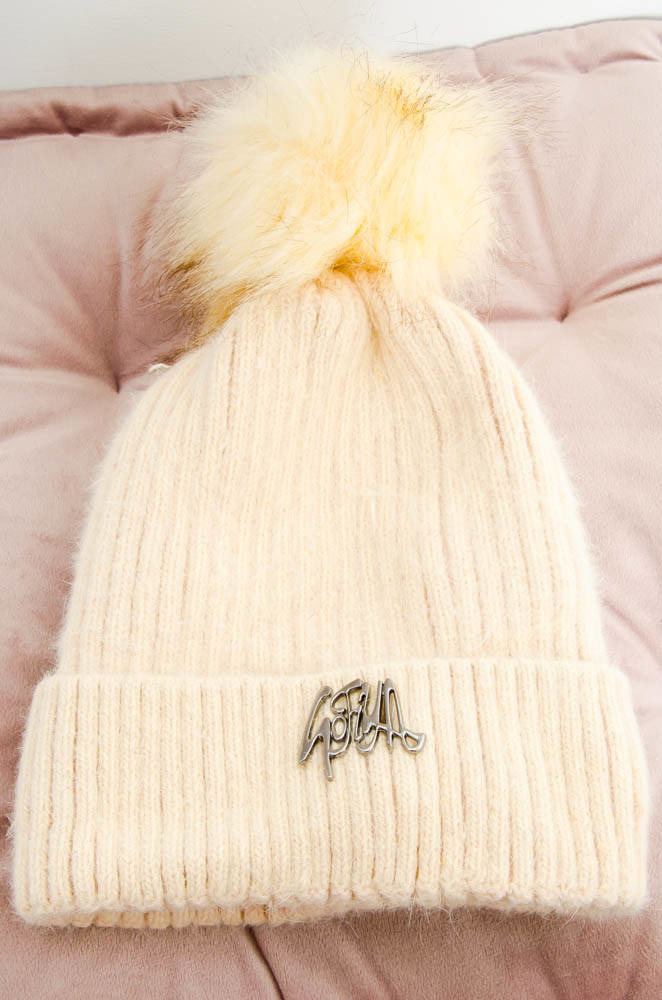 BEŻOWA OCIEPLANA CZAPKA Z PRZYPINKĄ