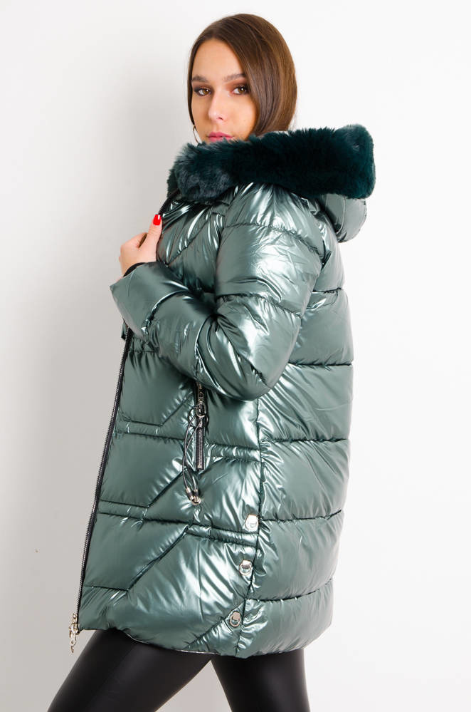 ZIELONA PIKOWANA KURTKA Z KAPTUREM