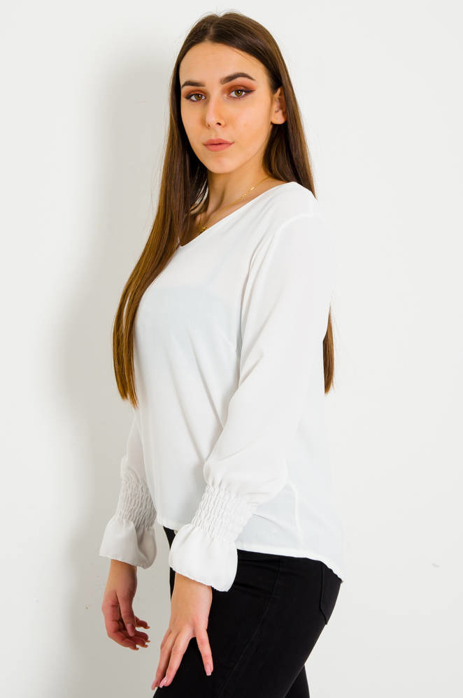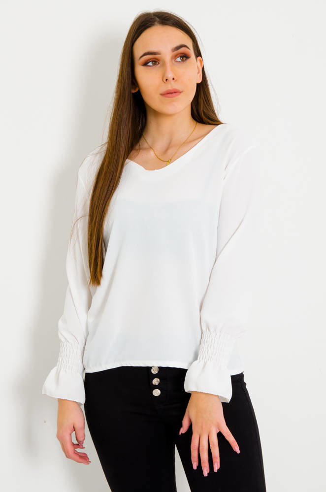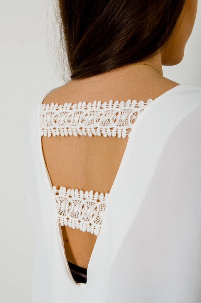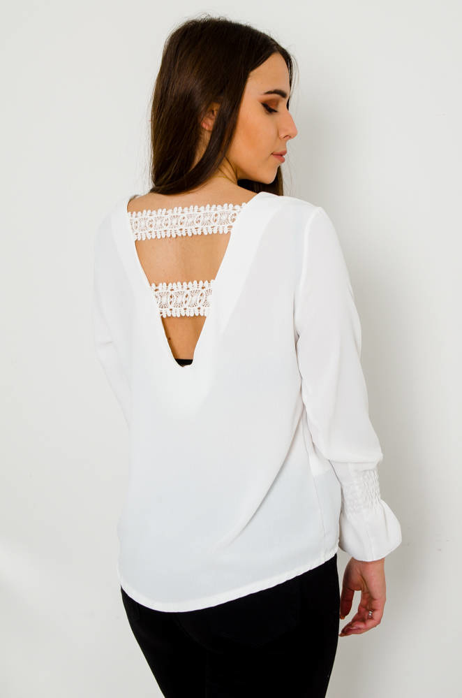 BIAŁA ELEGANCKA BLUZKA Z WYCIĘCIEM I KORONKĄ NA PLECACH