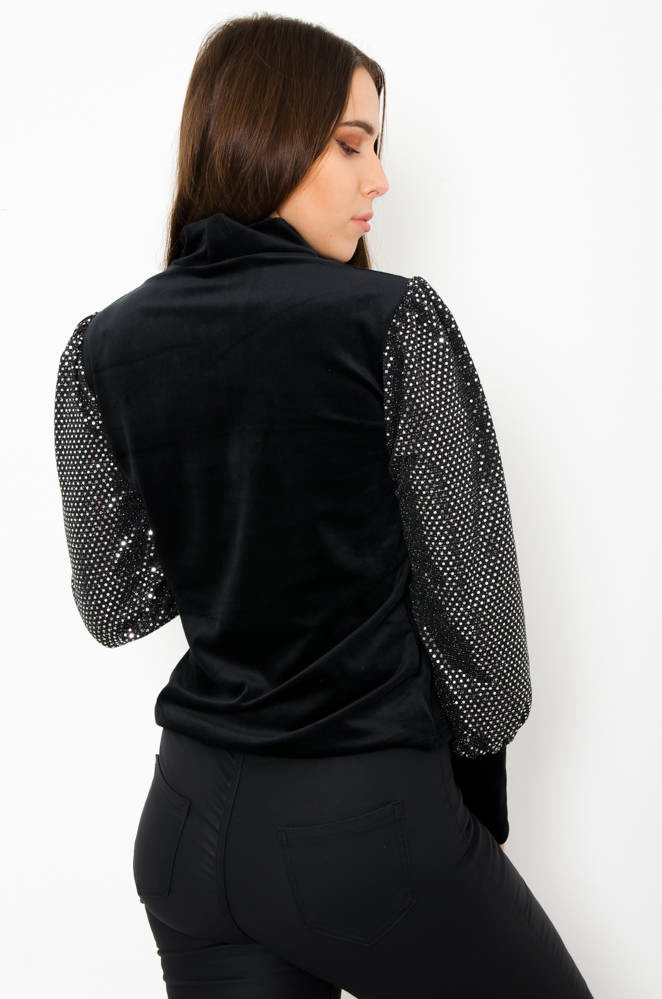 CZARNA BLUZKA Z CEKINOWYMI RĘKAWAMI