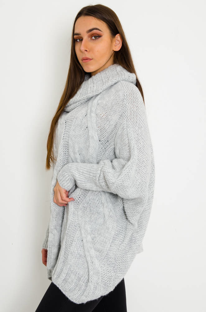 SZARY ASYMETRYCZNY SWETER- NIETOPERZ