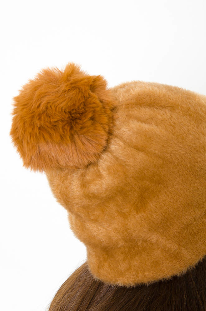BRĄZOWA CZAPKA ALPAKA Z POMPONEM