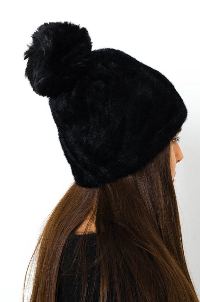 CZARNA CZAPKA ALPAKA Z POMPONEM