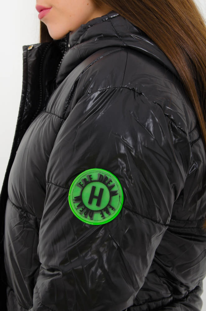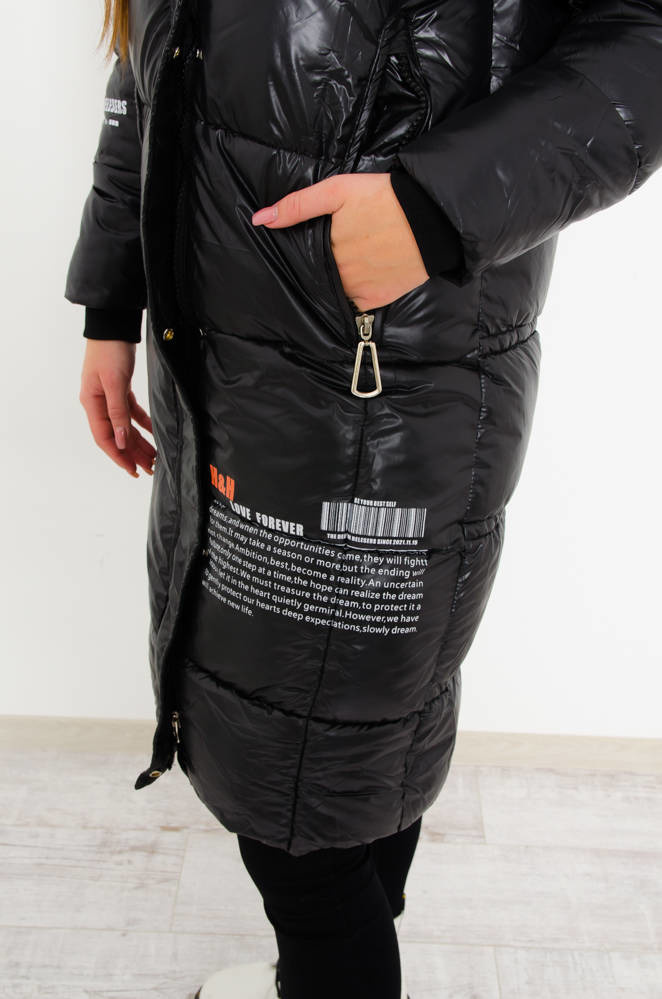 CZARNA DŁUGA KURTKA ZIMOWA Z NAPISAMI