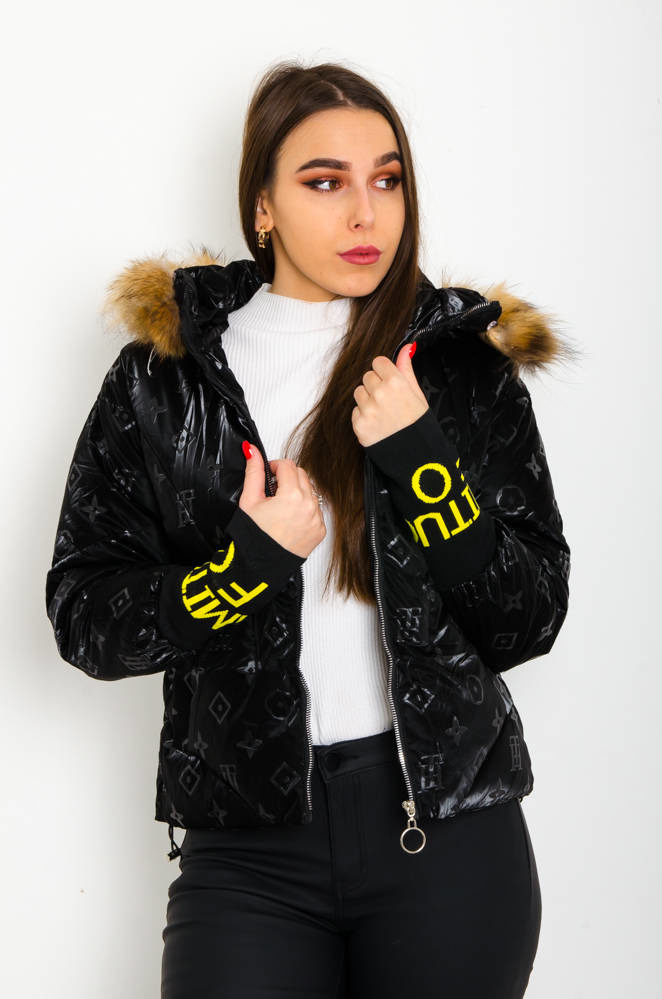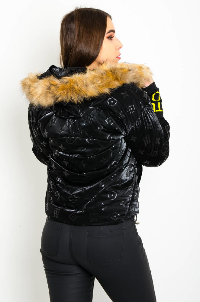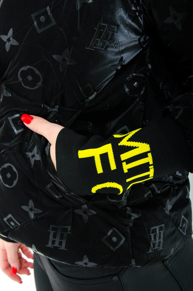 CZARNA PUCHOWA KURTKA WE WZORY LOUIS POŁYSKUJACA