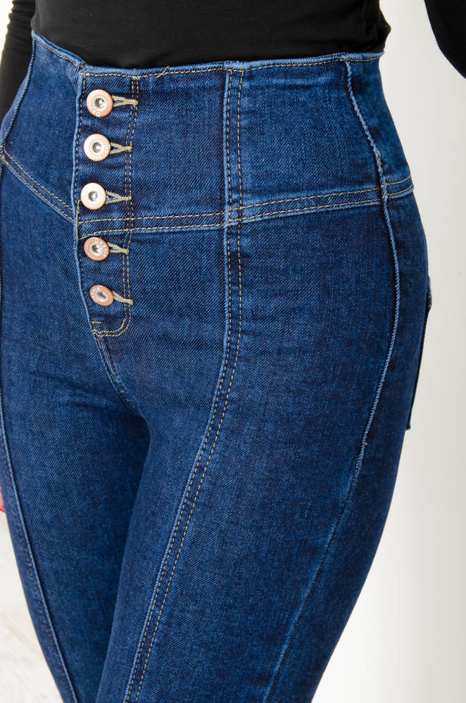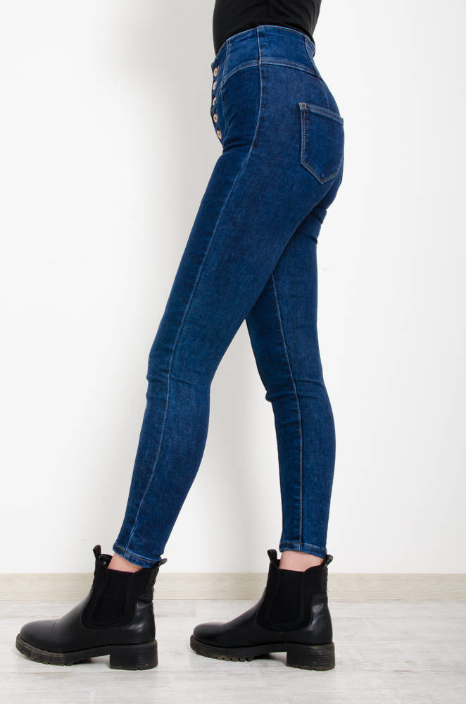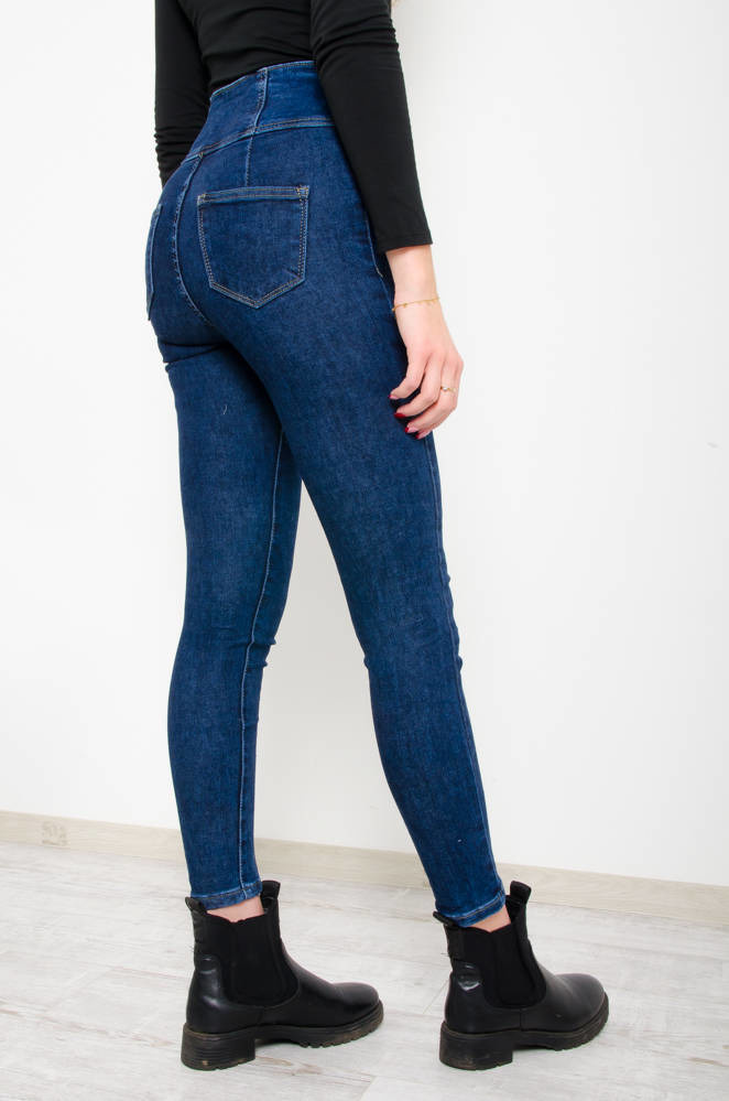 CIEMNE JEANSOWE SPODNIE Z PRZESZYCIAMI Z PRZODU