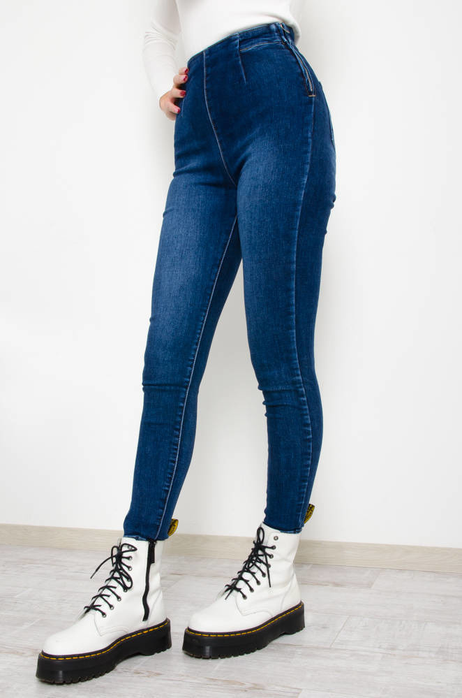 Jeansy z funkcją stretchu, który trzyma i modeluje talię, uda i pośladki oraz zachowuje kształt jeansów. Modelujące przeszycia- PUSH UP. Wysoki stan, suwak zapinany z boku. Obcisłe nogawki.