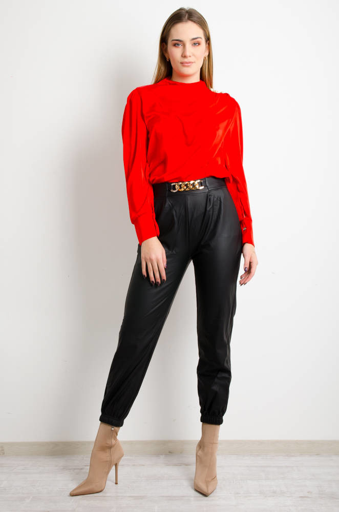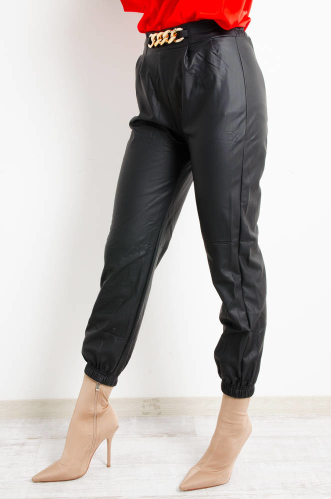 SPODNIE JOGGERY Z IMITACJI SKÓRY Z OZDOBNYM ŁANCUCHEM