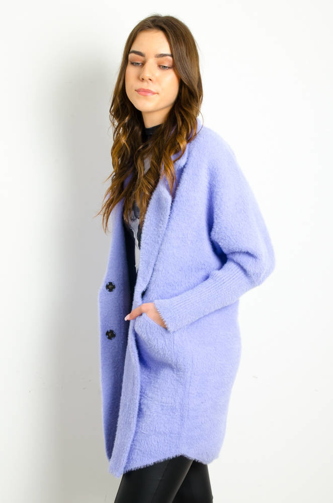 PŁASZCZ DŁUGI WEŁNIANY ALPAKA- JASNO-FIOLETOWY