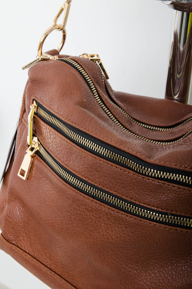 BRĄZOWA TOREBKA TYPU SHOPPER Z OZDOBNYMI ZAMKAMI
