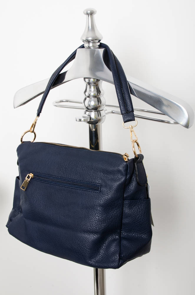 GRANATOWA TOREBKA TYPU SHOPPER Z OZDOBNYMI ZAMKAMI