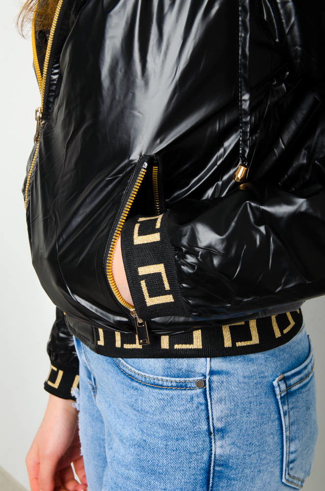 CZARNA POŁYSKUJĄCA KURTKA WIOSENNA Z KAPTUREM