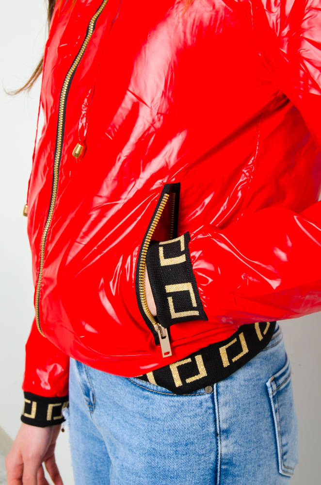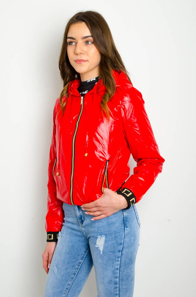 CZERWONA POŁYSKUJĄCA KURTKA WIOSENNA Z KAPTUREM