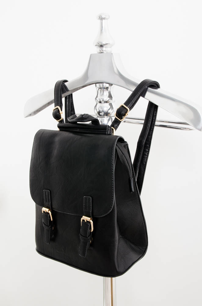 CZARNY PLECAK Z IMITACJI SKÓRY Z OZDOBNYM ZAPIĘCIEM