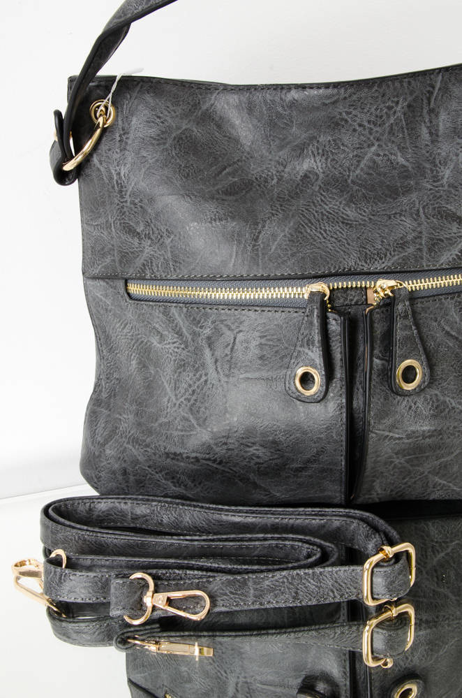 SZARA TOREBKA SHOPPER Z OZDOBNYM PRZESZYCIEM I ZAMKAMI