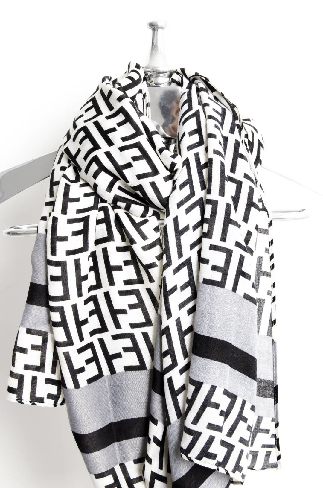KREMOWO-CZARNY SZAL WE WZORY