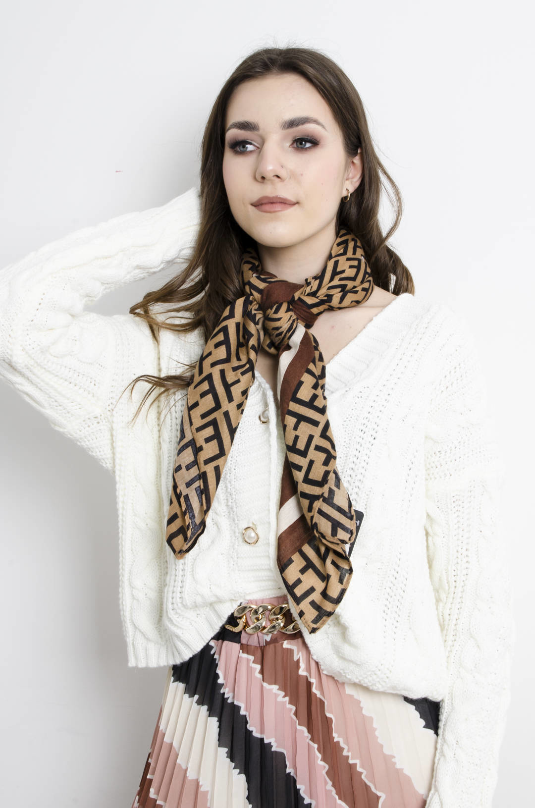 BRĄZOWO-CZARNY SZAL WE WZORY