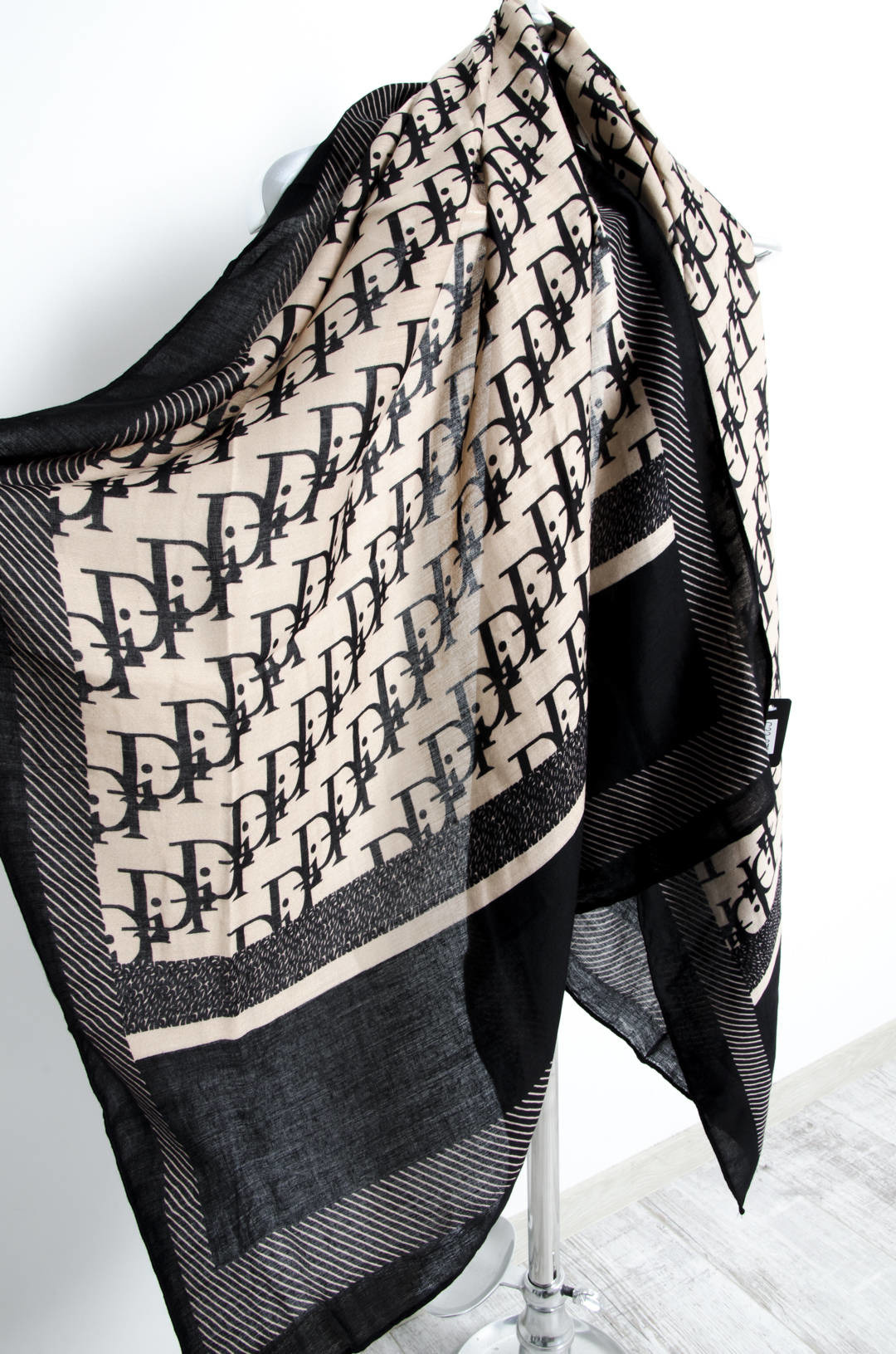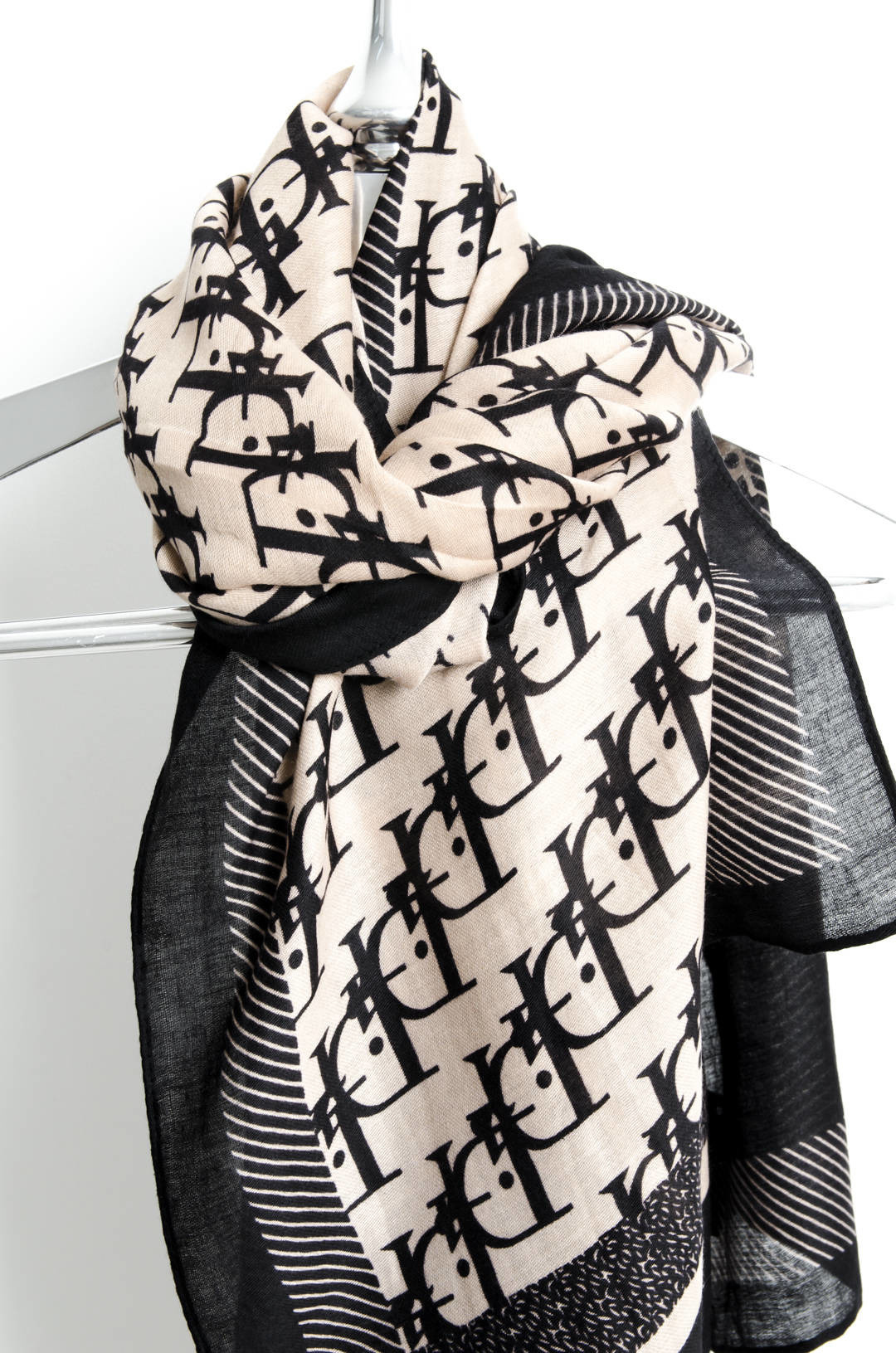 BEŻOWO-CZARNY WZORZYSTY SZAL