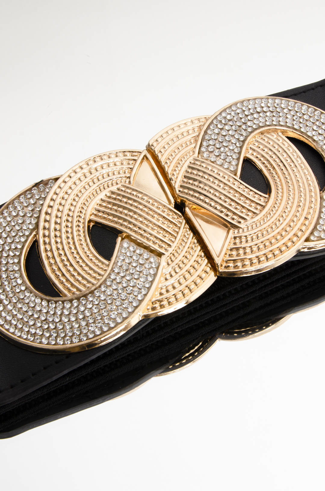 PASEK NA GUMIE ZE ZŁOTA KLAMRĄ- CZARNY