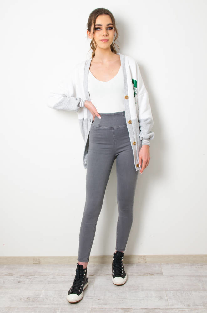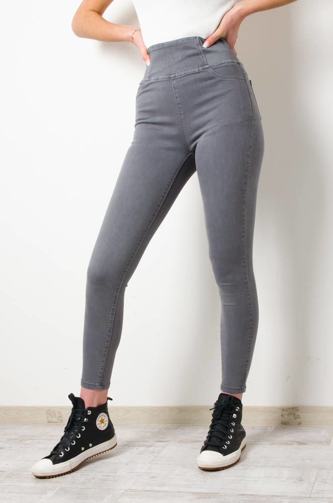 SPODNIE JEGGINSY Z GUMĄ W PASIE - WYSOKI STAN- POLECANE DLA WYSOKICH OSÓB- SZARE