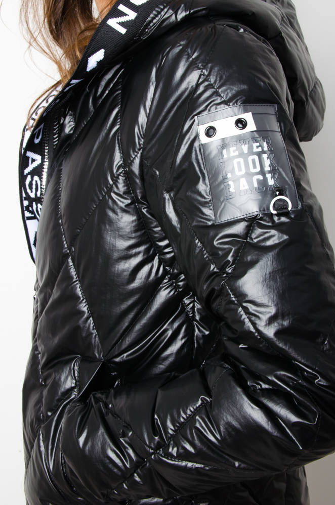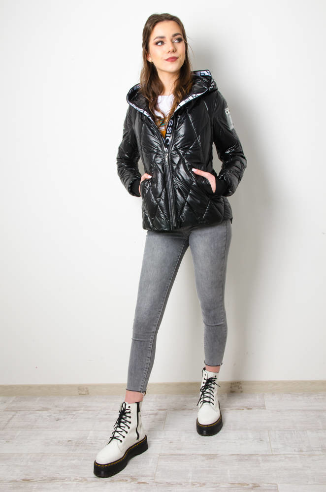 KURTKA WIOSENNA PIKOWANA Z KAPTUREM - CZARNA