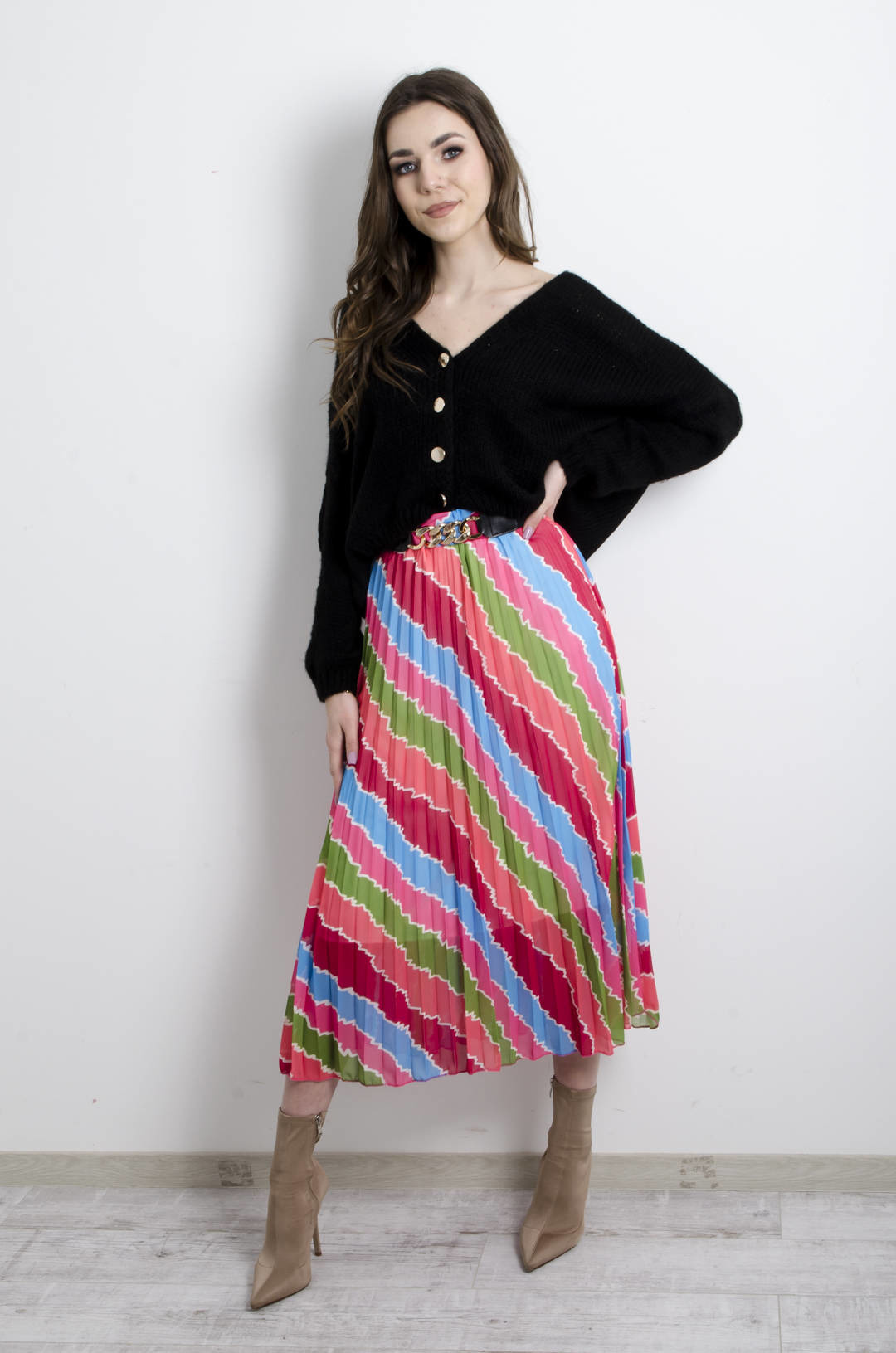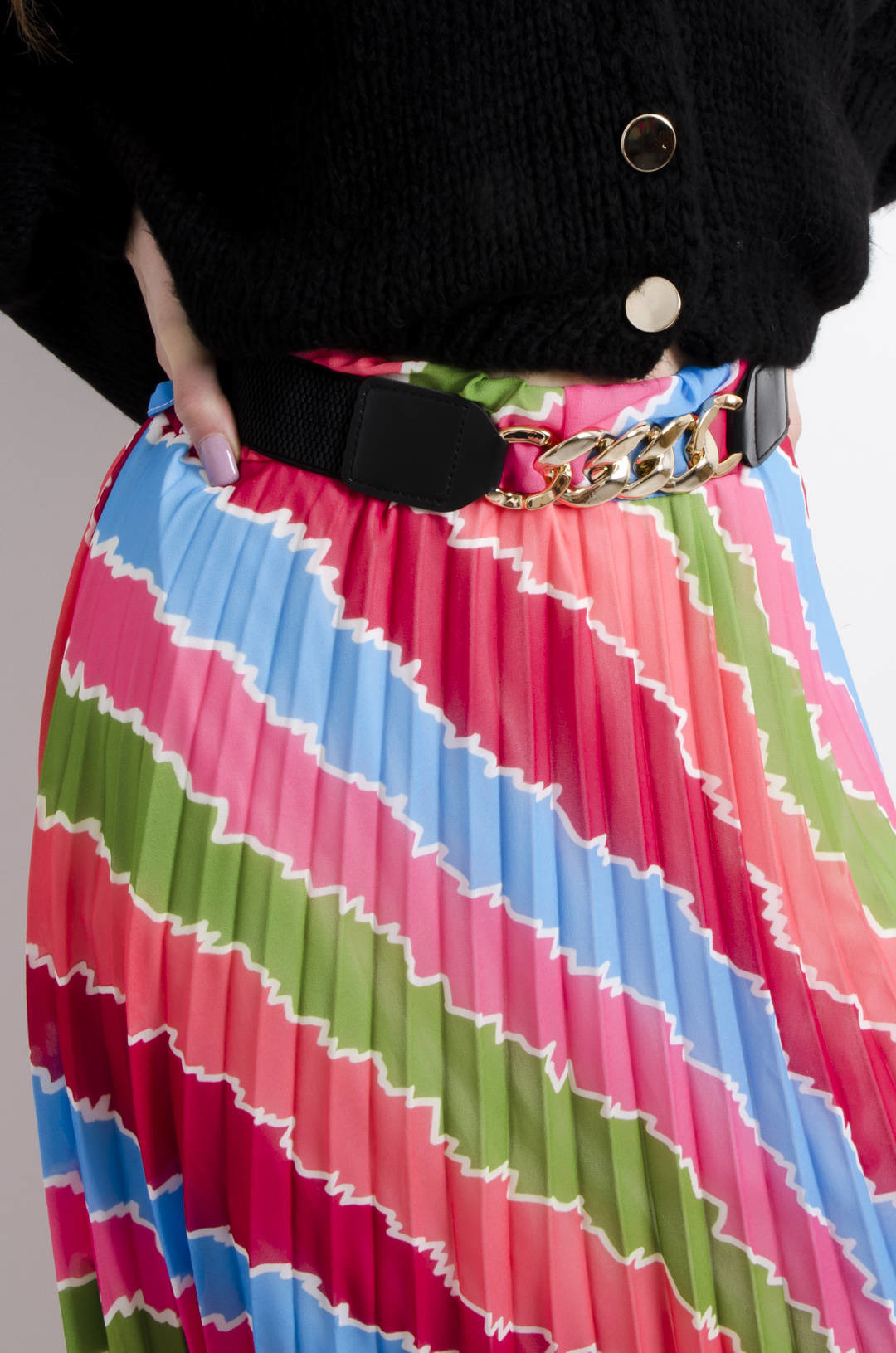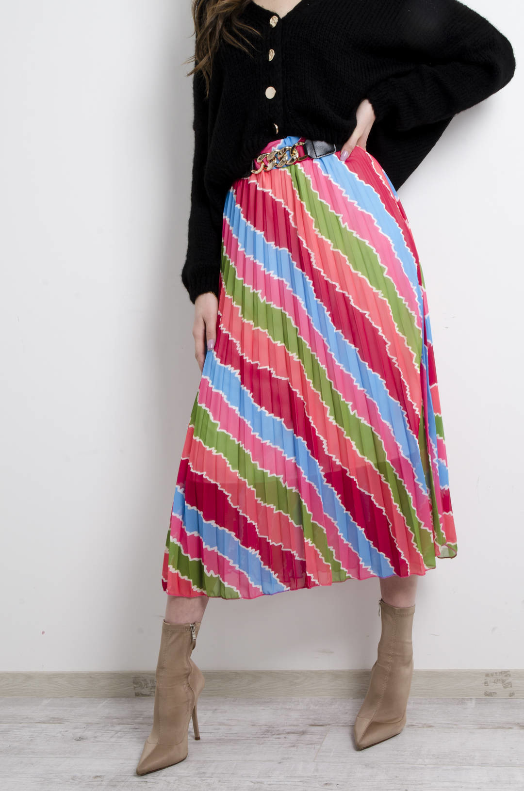SPÓDNICA WZORZYSTA PLISOWANA Z PASKIEM- CZERWONA