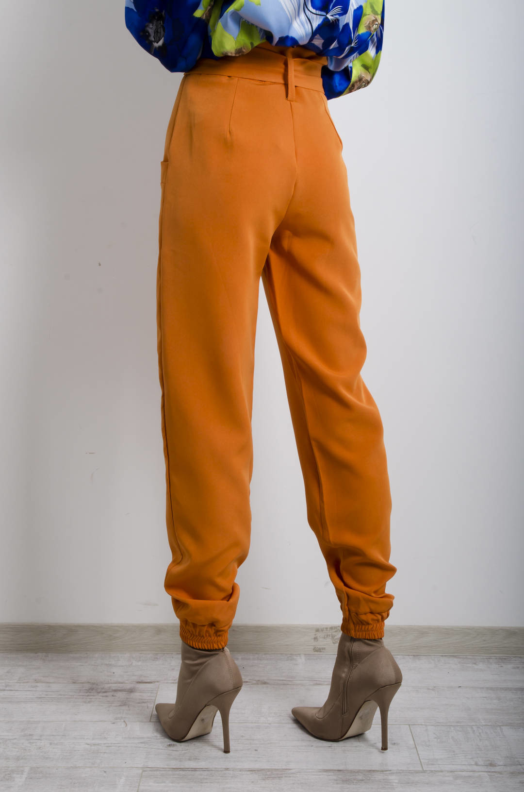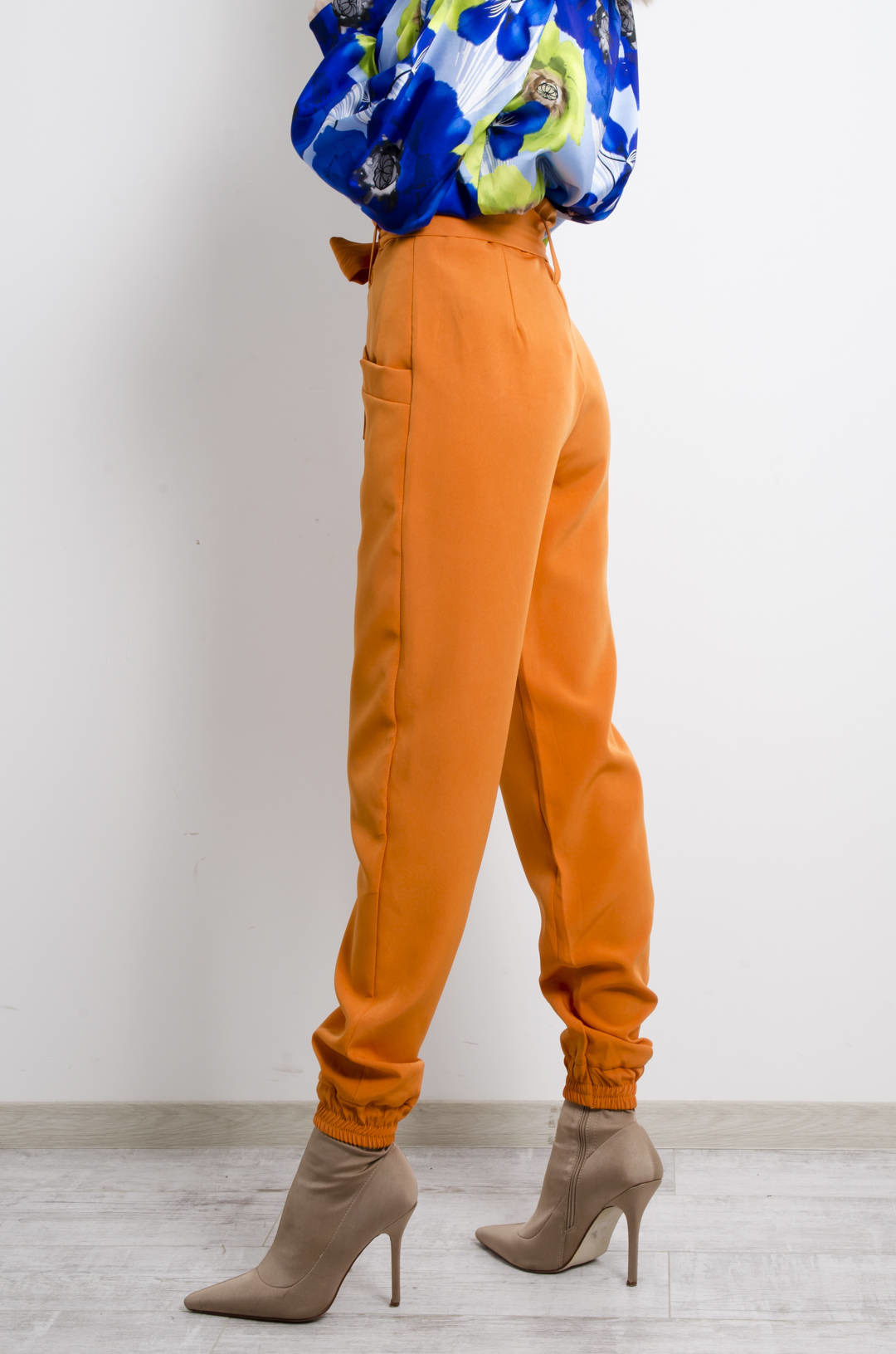 SPODNIE MATERIAŁOWE ZE ŚCIĄGACZAMI I WIĄZANIEM- POMARAŃCZOWE