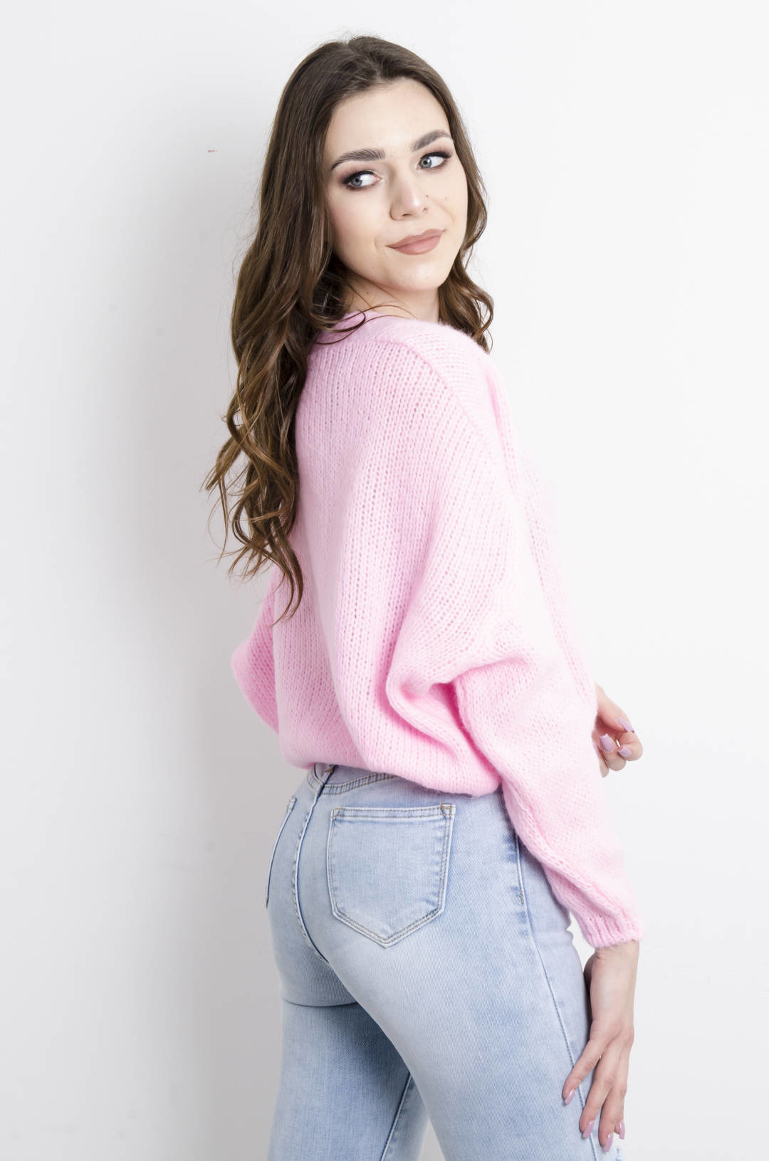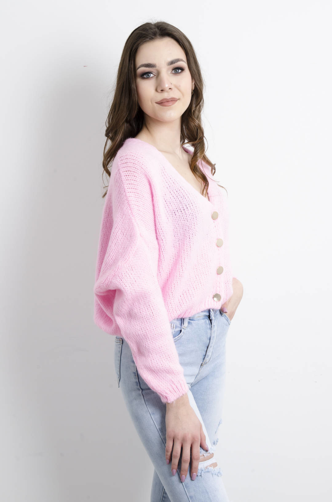 SWETER KARDIGAN ZAPINANY NA GUZIKI- JASNY RÓŻ