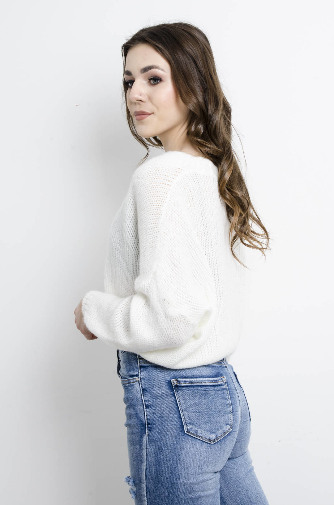 SWETER KARDIGAN ZAPINANY NA GUZIKI- BIAŁY