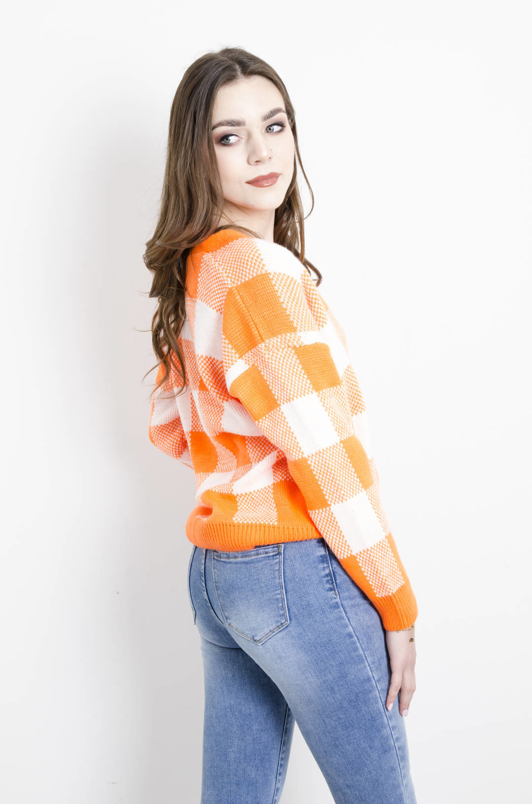 SWETER POMARAŃCZOWY W SZACHOWNICĘ