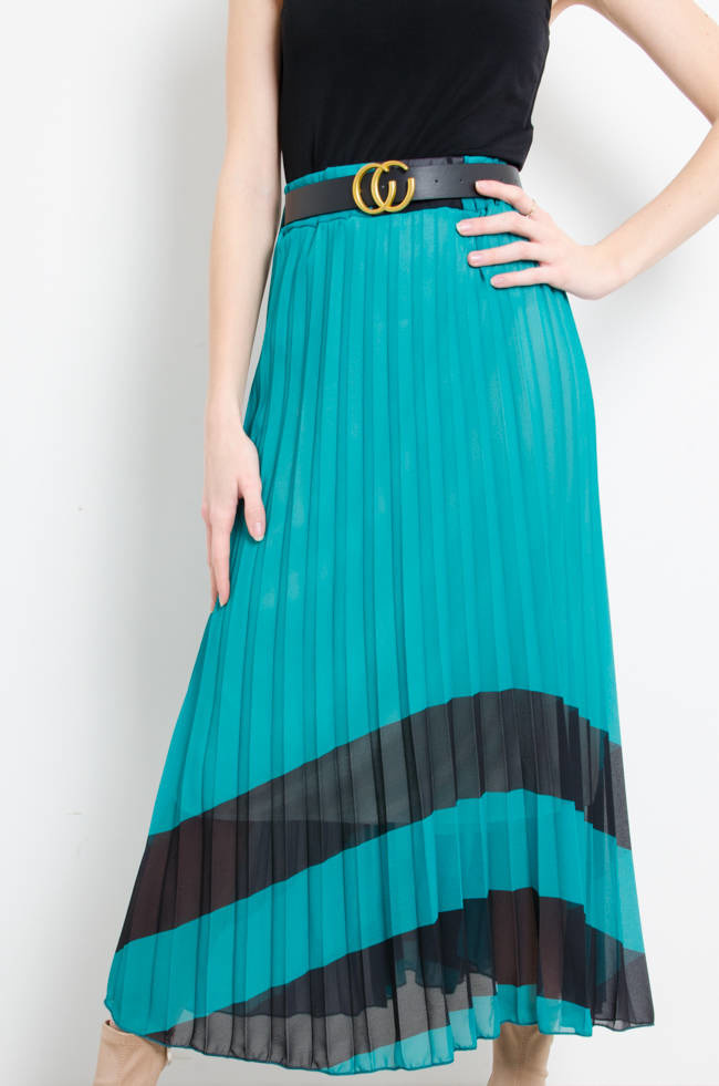 SPÓDNICA PLISOWANA Z PASKIEM - ZIELONA