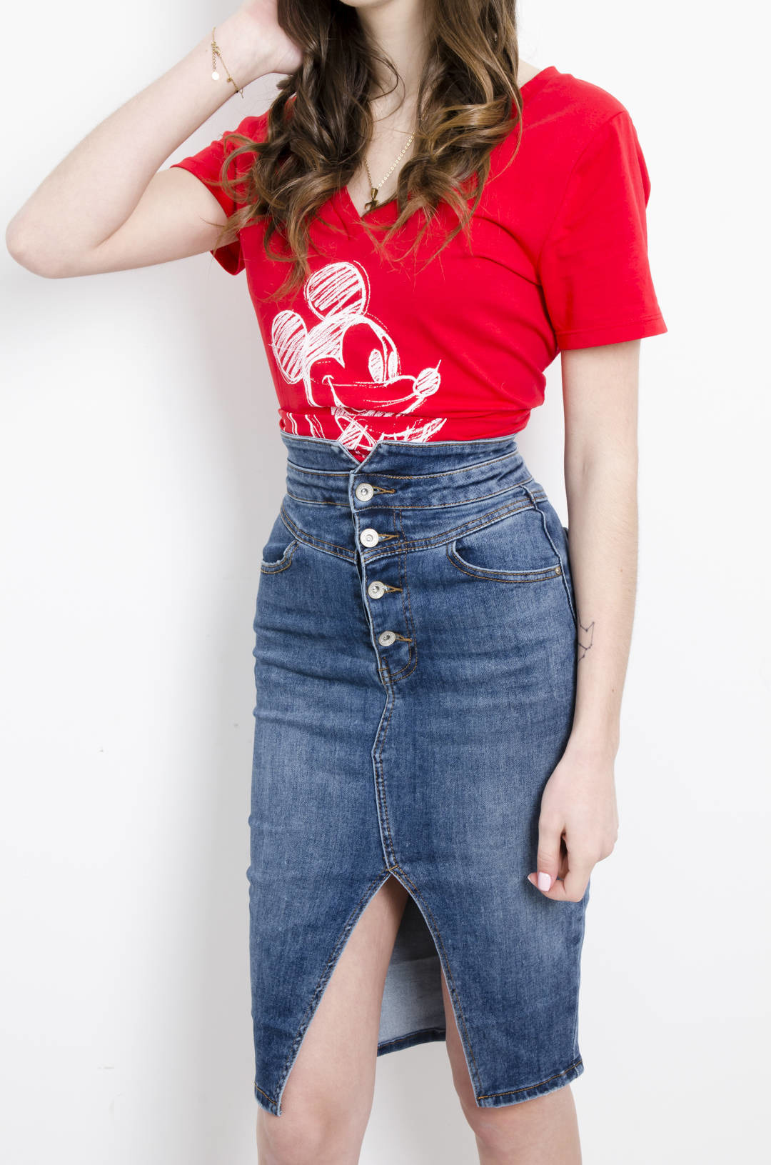 SPÓDNICA JEANSOWA MIDI Z GUZIKAMI