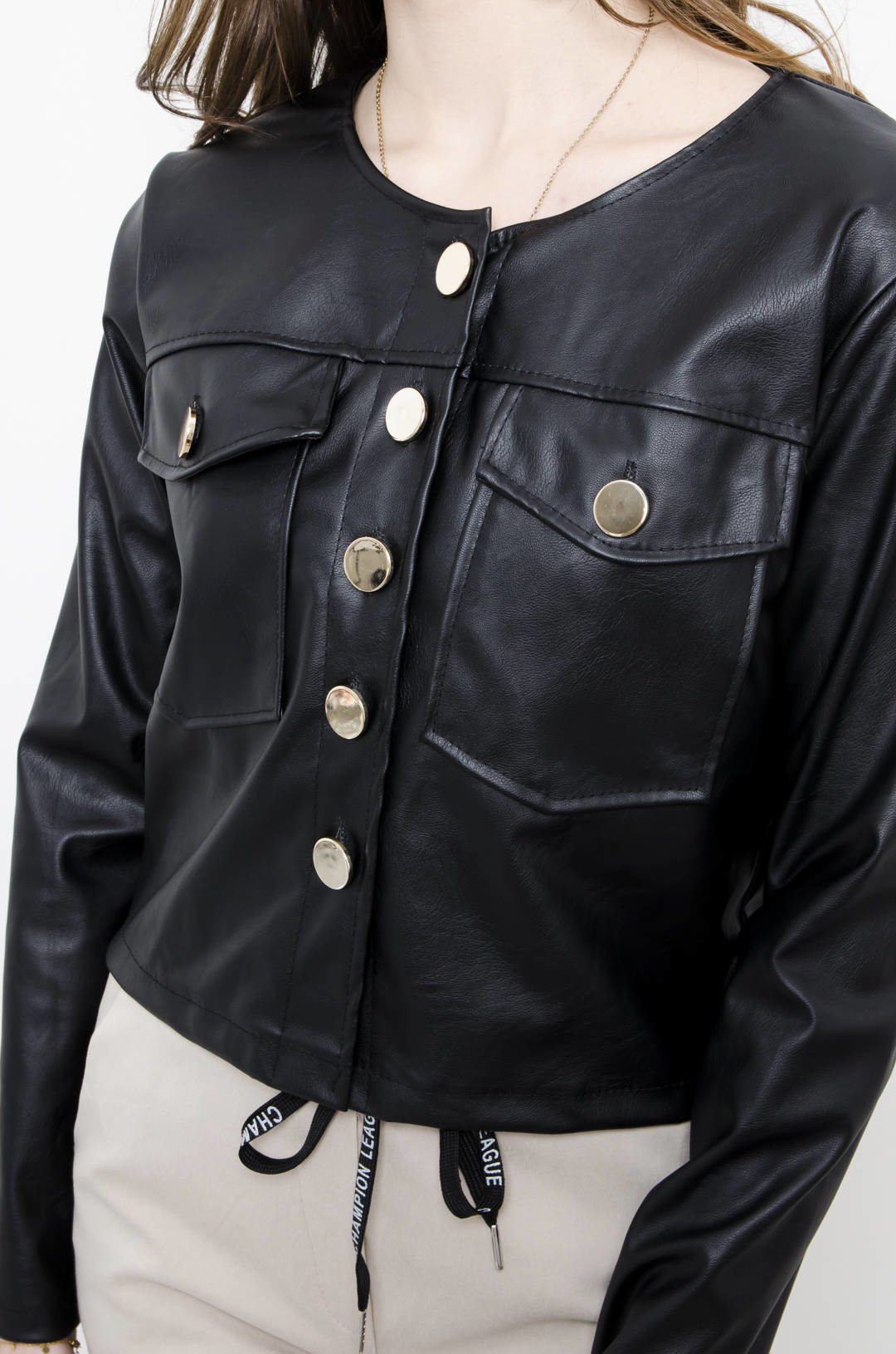 ŻAKIET Z IMITACJI SKÓRY W KOLRZE CZARNYM