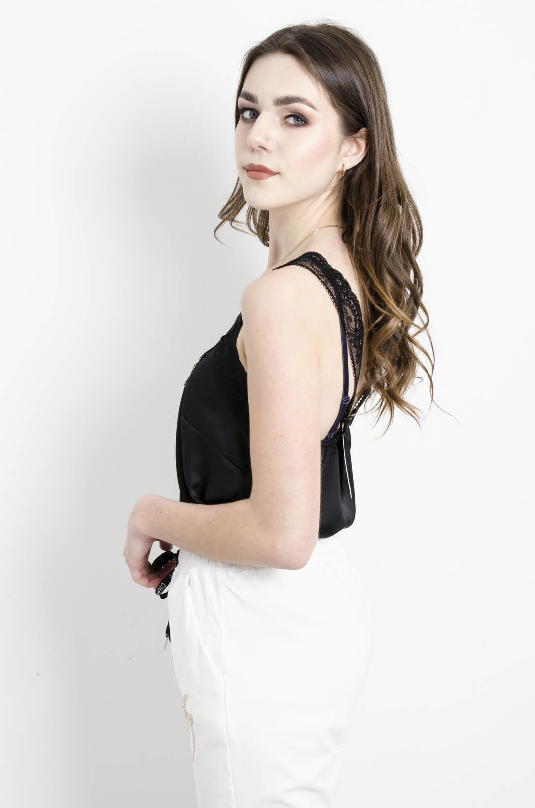 SATYNOWY TOP NA RAMIACZKACH WYKOŃCZONY KORONKĄ