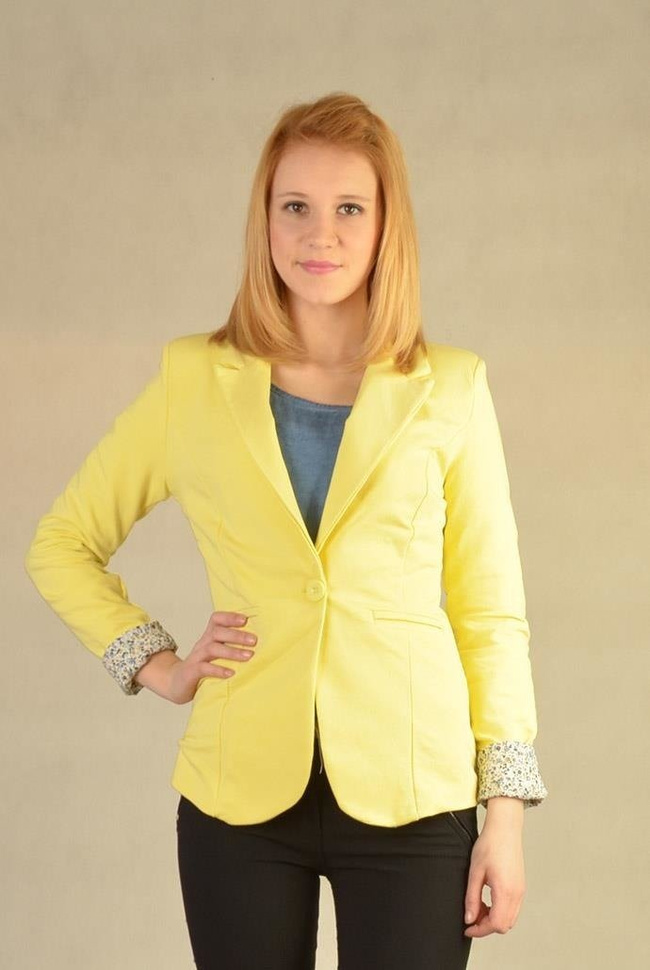 Elegancki żakiet w modnym wyrazistym kolorze. Taliowany, zapinany na jeden guzik. Świetnie podkreśla kobiecą sylwetkę, będzie idealnym uzupełnieniem zarówno codziennych jak i eleganckich stylizacji.