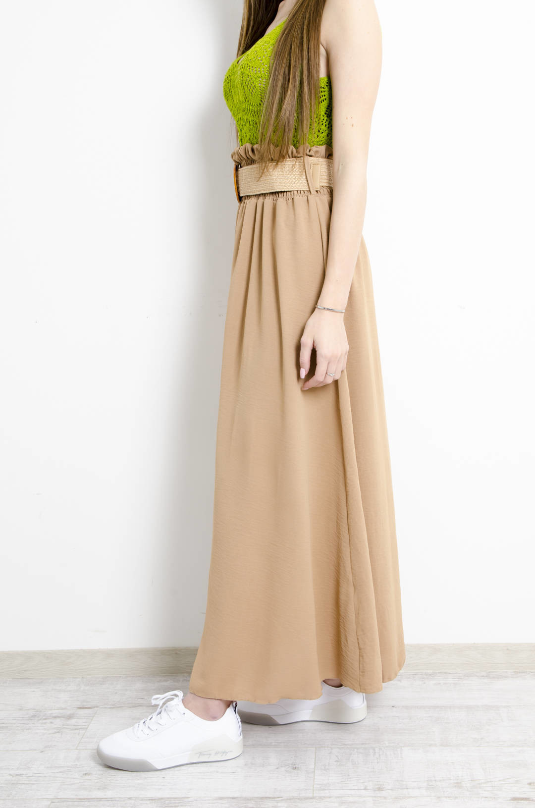 SPÓDNICA MAXI Z GUMĄ + PASEK BRĄZOWA