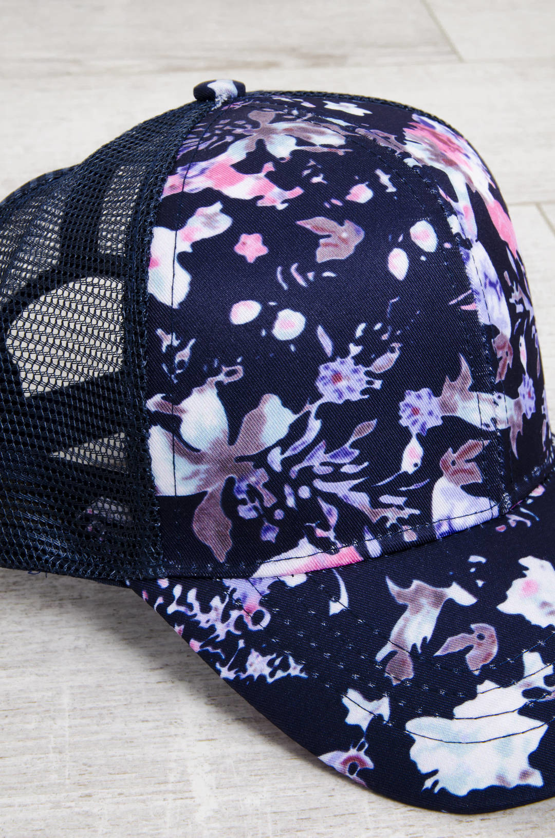 CZAPKA Z DASZKIEM W KWIATY- GRANATOWA
