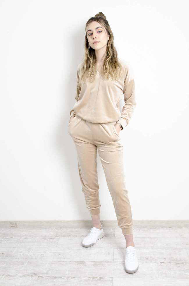 KOMPLET DRESOWY WELUROWY- BEŻOWY