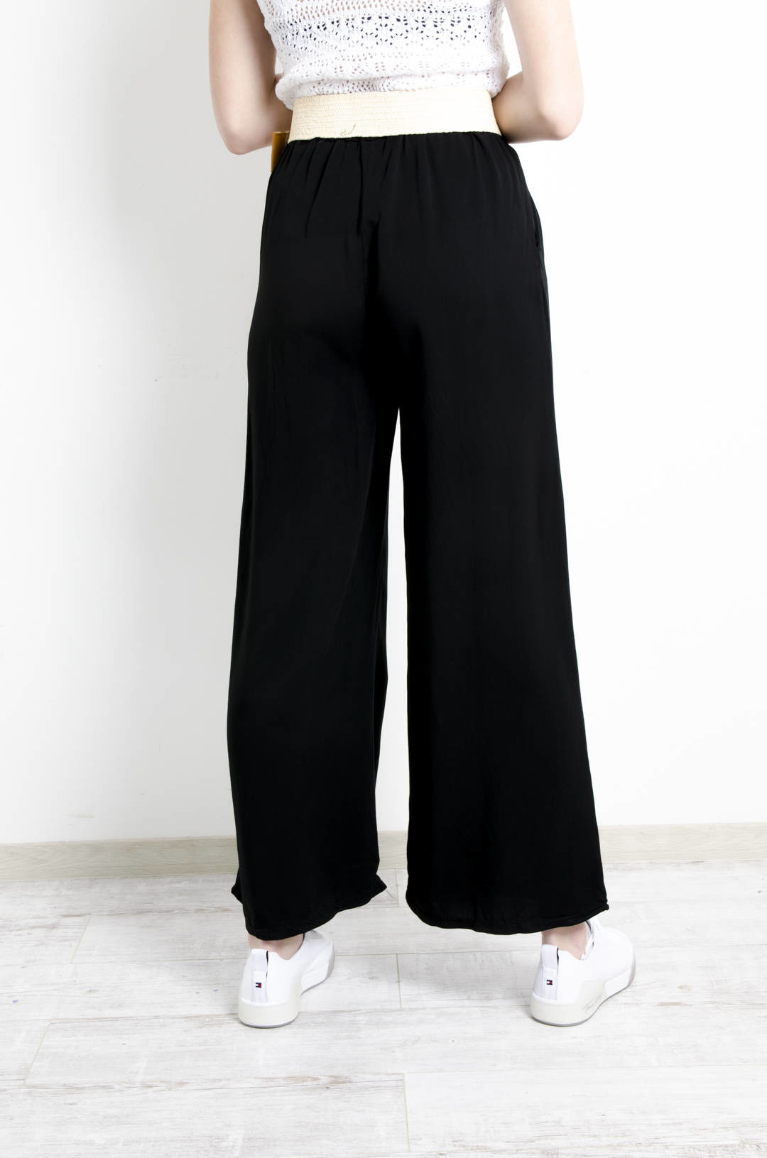 SPODNIE MATERIAŁOWE Z PLECIONYM PASKIEM- CZARNE