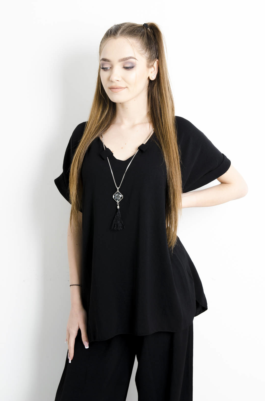 KOMPLET CZARNY Z OZDOBNYM WISIORKIEM