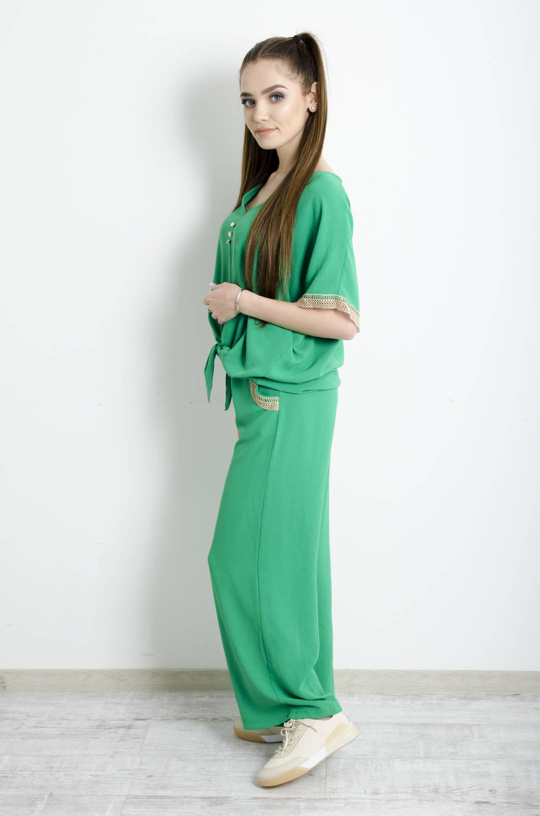 KOMPLET ZIELONY Z OZDOBNYM WIĄZANIEM I KORONKĄ
