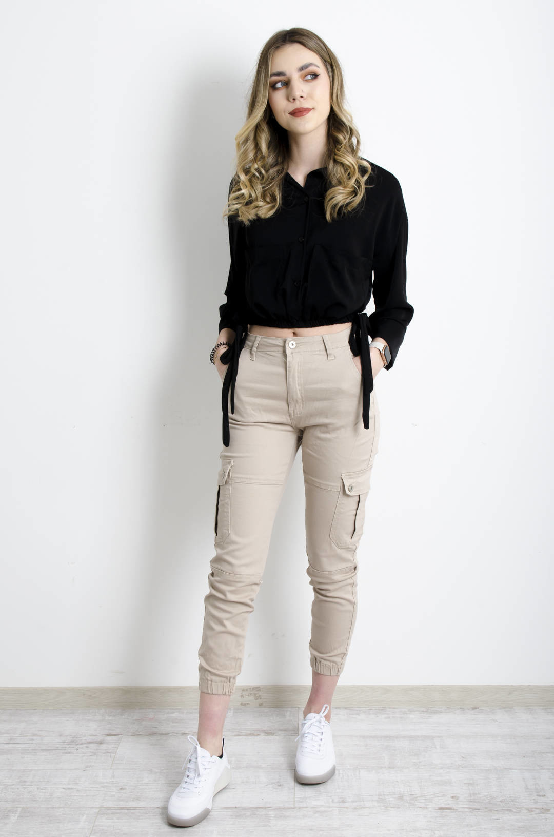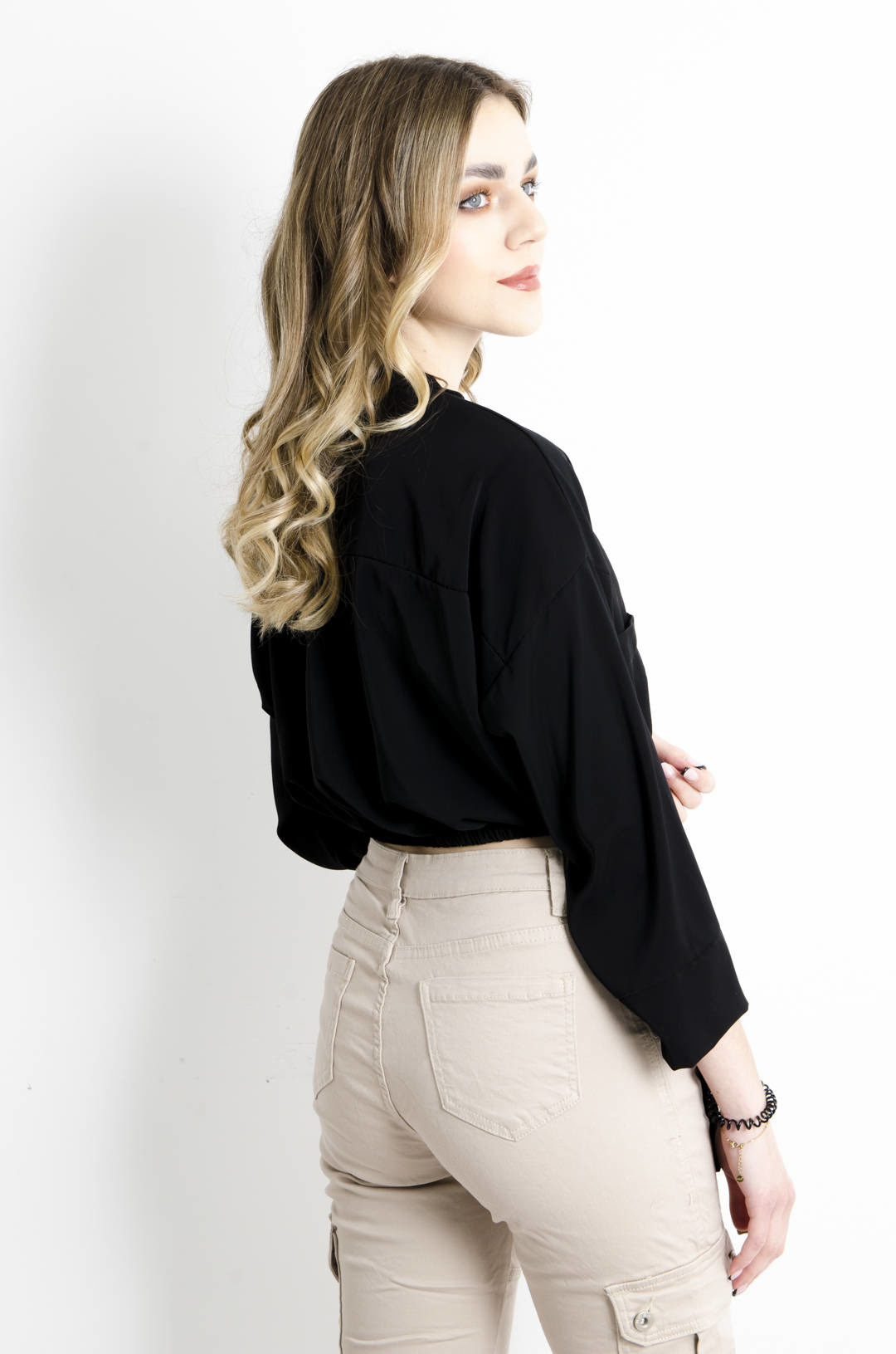 KOSZULA KRÓTKA ZE ŚCIĄGACZEM- CZARNA
